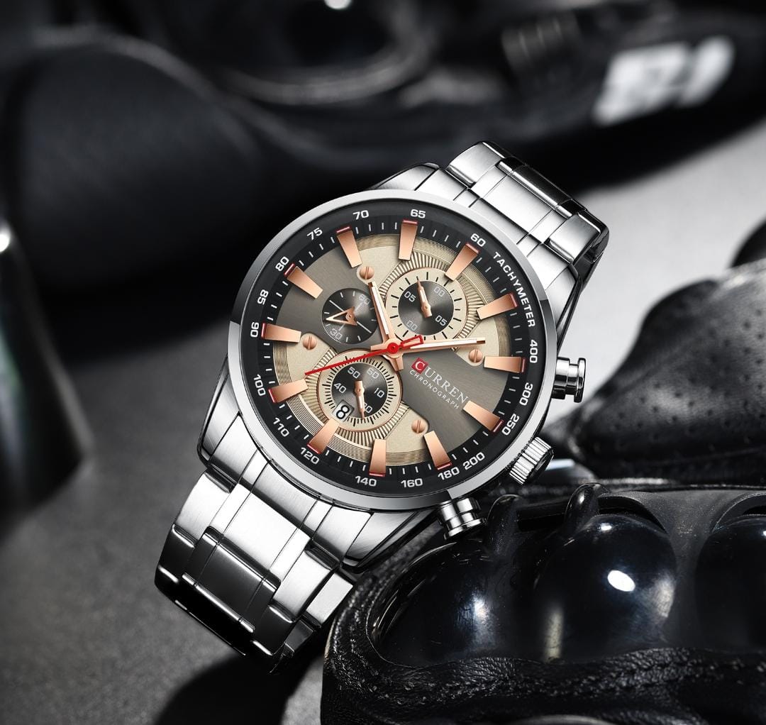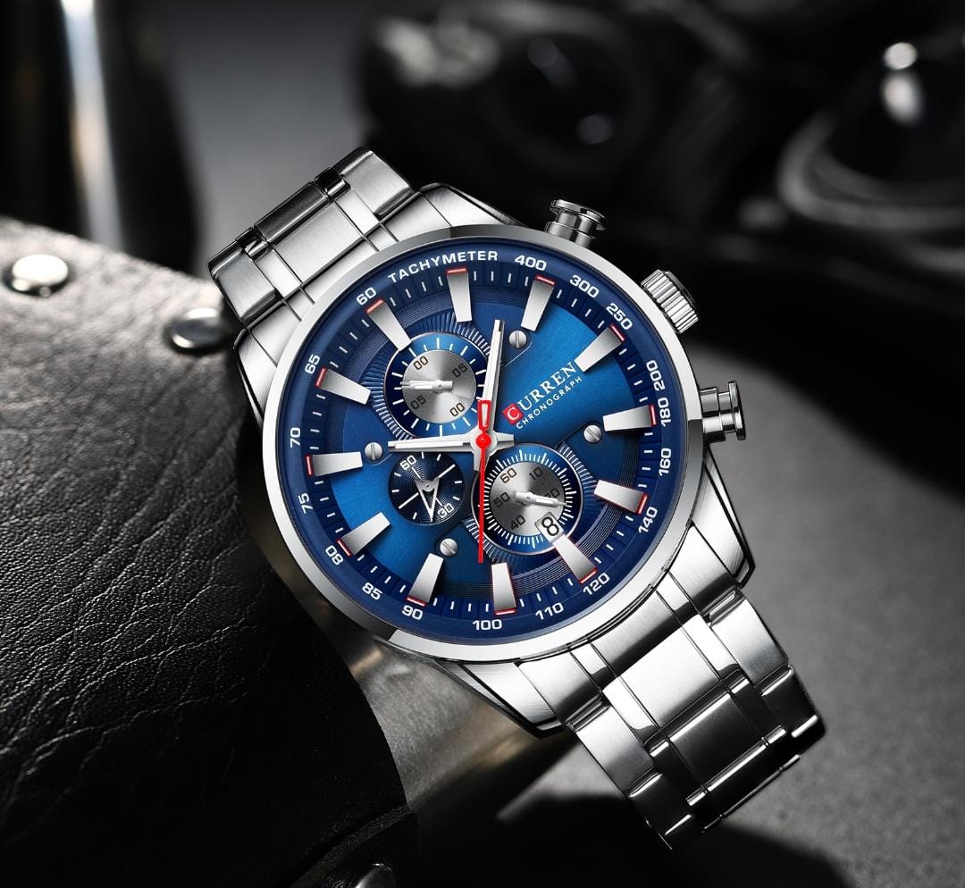 HORA ANALOGA CRONOGRAFOS FUNCIONALES PULSO EN ACERO A PRUEBA DE AGUA ESTUCHE ORIGINAL CURREN