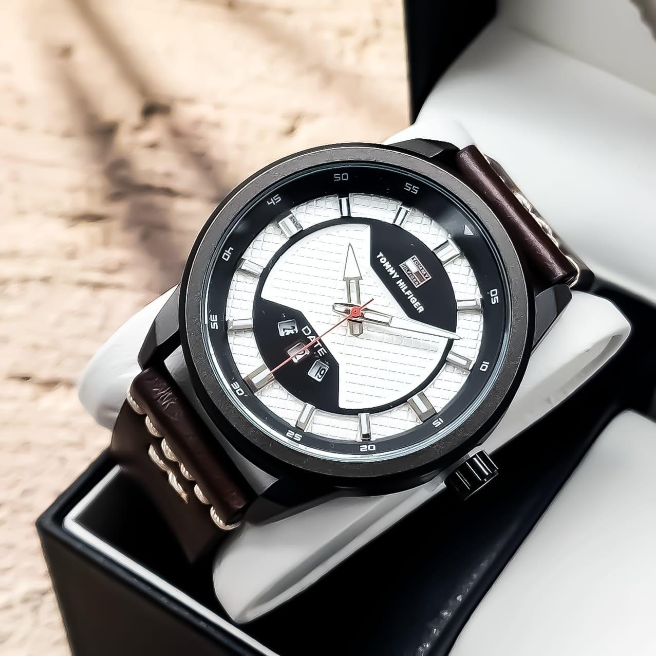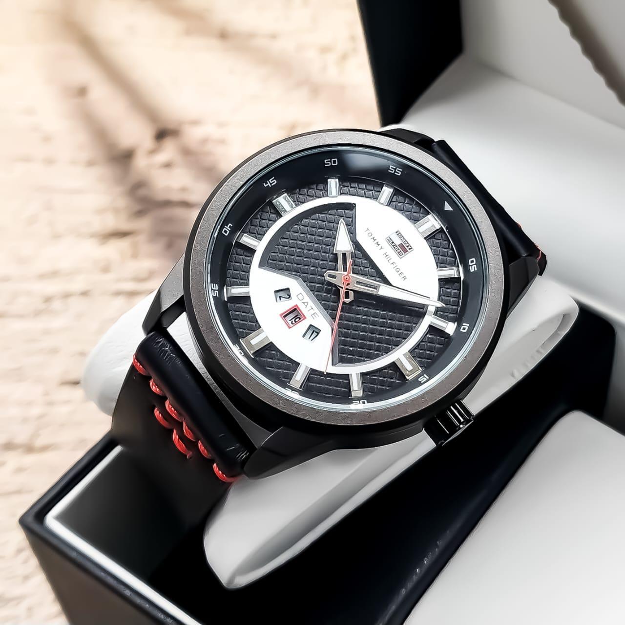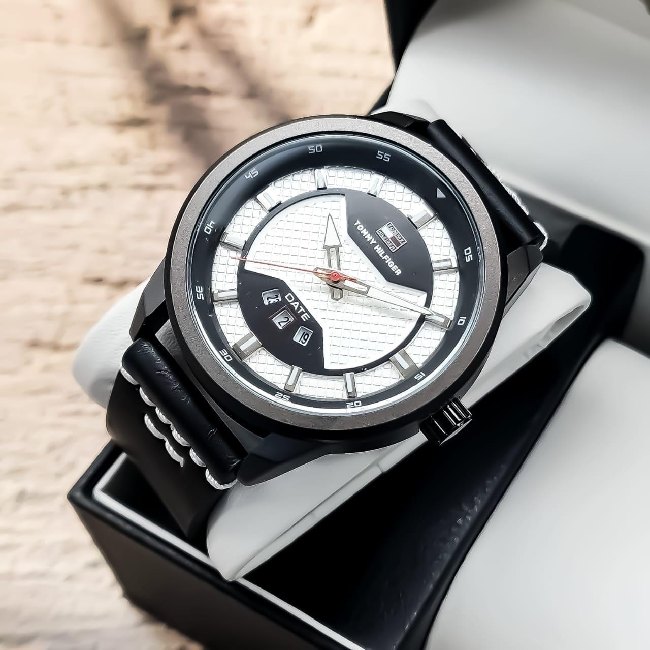TOMMY HILFIGER Reloj para caballero Pulso en cuero sintético de alta calidad Segundero lateral y calendario funcional